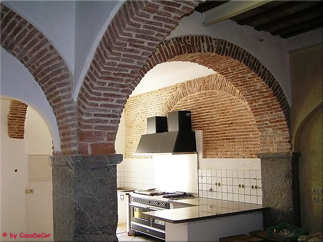 Recuperação duma casa antiga no centro histórico de Vila Real de Santo António. Os arcos não estavam visíveis no início das obras e são suportados por pilares em granito, maciços.